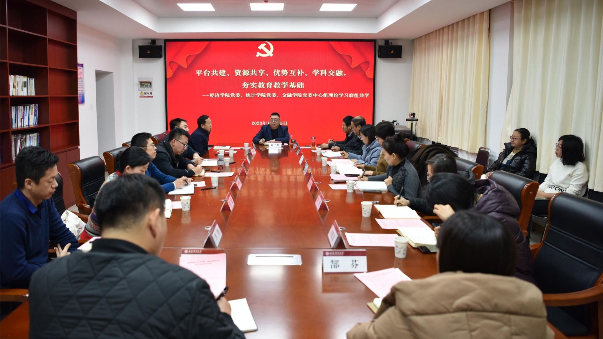 12月25日下午,由经济公司党委、统计公司党委、金融公司党委共同组织的理论学习中心组联组共学活动在EMC易倍体育举行。经济公司党委、统计公司党委和金融公司党委党员领导干部参加学习,非党员领导干部、党务教学秘书、团委书记列席旁听。统计学部所属的信息公司党委书记、应用数学公司党委书记应邀参会。本次联组共学活动的主题为“平台共建、资源共享、优势互补、学科交融,夯实公司产品基础”。