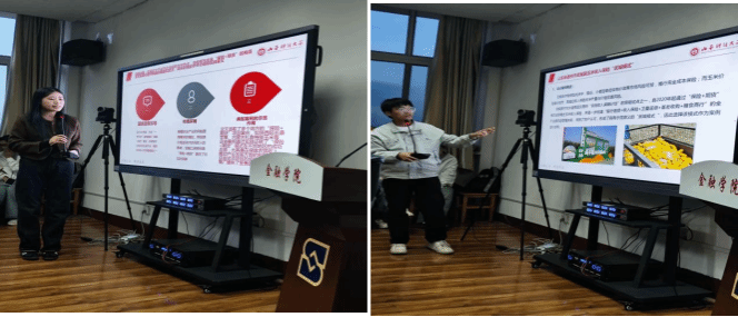在本次学术沙龙活动中,章力丹同学率先从选题依据和文献来源入手,阐述了期刊简介、作者简介、摘要以及文献综述等内容。随后,樊国玄同学讲述了我国“保险+期货”现状、典型案例、美国“保险+期货”简介,并就此提出相应的问题。