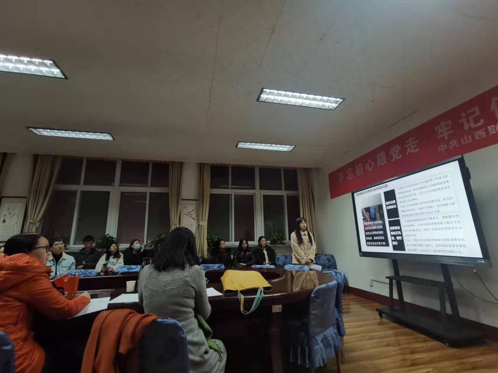 2021年12月9日晚,2021-2022学年第6期学术沙龙活动在高姝姝同学的主持下如期举行,本次沙龙的主题是"互联网保险中消费者权益的保护", 由2021级保险专硕班的洪紫含和杨洁为大家作汇报讲解,本次沙龙有幸邀请到王朝晖老师和高侯平老师作为讲评嘉宾,2021级各专业的同学参加了本次沙龙。