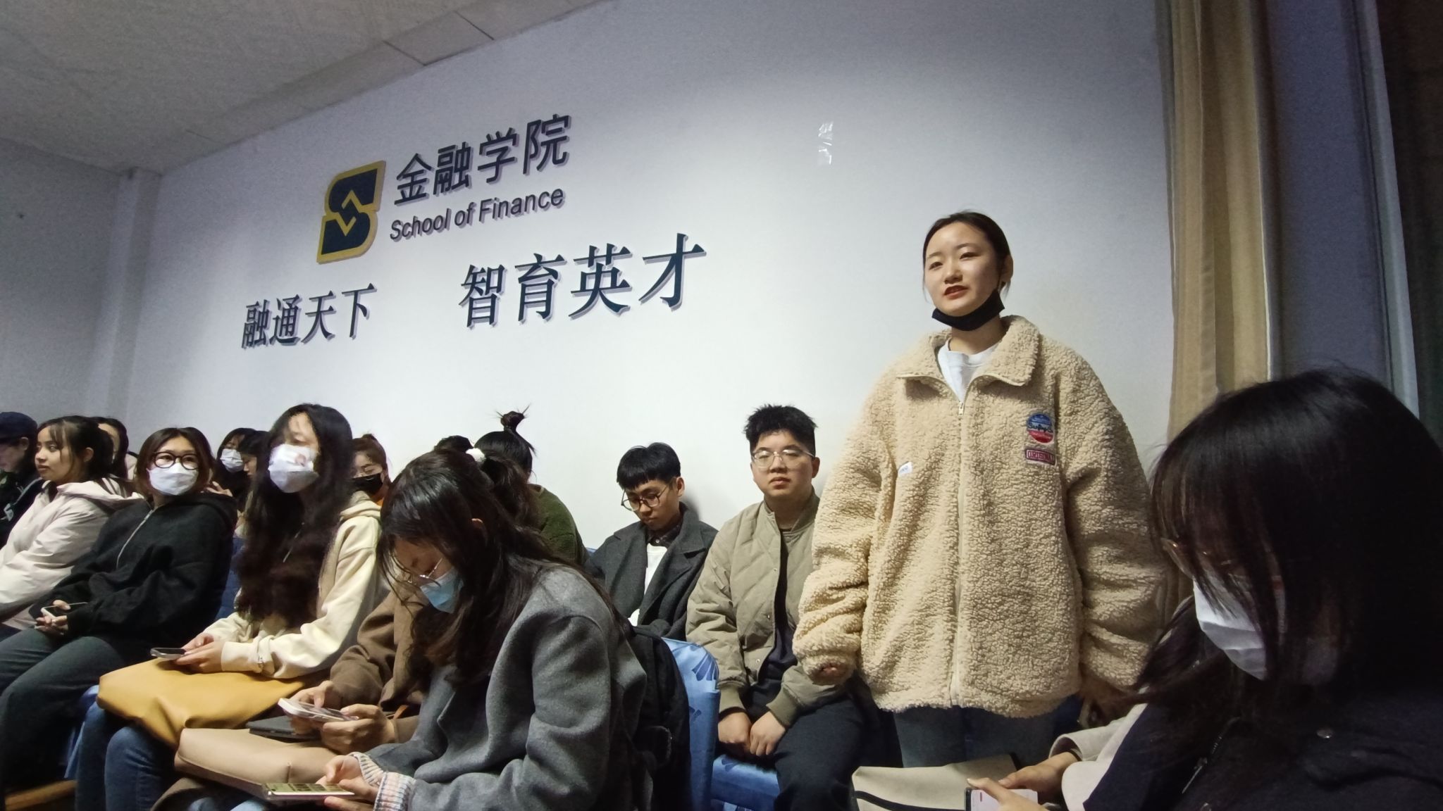 最后,两位老师对本次汇报进行了点评和总结。王朝晖老师认为汇报人在讲解现状时,不能仅局限于一些业务规模和数据变化,其他例如法律法规和主要业务结构的产品类型也需要详细阐述;汇报人在答疑解惑时没有针对问题明确的解答,还有待加强。张晶老师指出,这次汇报的数据搜集方面做的不够充分,数据选取有些久远,要多收集“自己”的数据,不可做“拿来主义”;另外,老师们还指出:同学们针对现状所提出的问题不够具体化,对于具体问题的拆解、分析能力还需进一步加强。