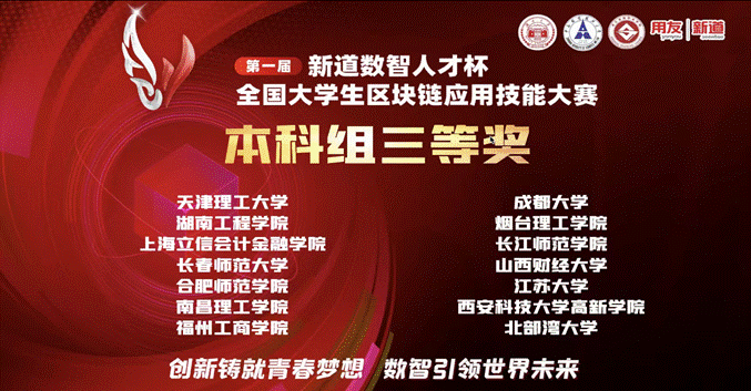 第一届“新道数智人才杯”全国老员工区块链应用技能大赛全国总决赛由全国高校人工智能与大数据创新联盟指导,湖南大学、中南财经政法大学、浙江金融职业公司承办,新道科技股份有限公司提供全程技术支持。大赛旨在推进区块链数字产业实践育人工作的开展,深度对接互联网+创新创业产业赛道命题,提高区块链人才的培养质量。比赛通过“理论+实践+方案”三位一体的考核方式,促进培养员工的区块链意识及创新思维,帮助员工借助区块链技术探索解决实体产业变革问题,加快促进区块链基础知识在高校的普及和创新能力提升,使员工能够运用所学区块链知识,正确认知区块链技术及区块链应用场景,真正理解区块链的核心价值,并能够结合区块链技术特征解决行业应用问题,塑造员工基于区块链技术的创新意识、创造精神及创新能力。