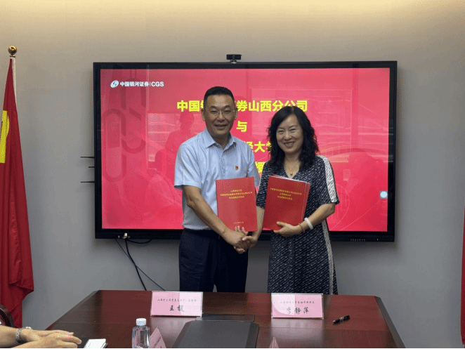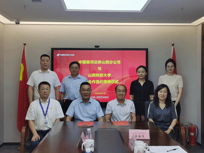 金融公司党委书记张继平在签约仪式上以“有着厚重的历史积淀、有着优秀的文化传承、有着创新的公司产品理念”为主线,详细介绍了公司的发展历程以及为国家和区域经济社会发展所贡献的“山财智慧”,并对公司以“晋商与票号”为主要特色的公司产品、科学研究、文化传承、金融服务及金融支持等方面做了基本介绍。他表示,通过同中国银河证券山西分公司的深度合作,实现学界和业界资源共享,全方位、多领域、广维度实现“第一、第二、第三课堂”协同育人,让教育更好地润泽员工,更好地服务金融强国战略,培养出更多更好的有理想、有情怀、敢担当、能吃苦、肯奋斗有学识、有能力的新时代金融人才。
