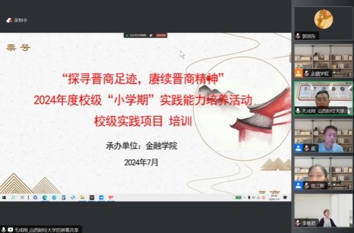 会议第二项,毛成刚老师介绍了“小学期”校级实践项目“探寻晋商足迹,赓续晋商精神”。首先,毛成刚老师介绍了该项目开展的意义、当前项目报名的人数、实践地点以及研究设想计划等。其次,毛成刚老师介绍了该项目开展所应用的田野调查、实地访谈、文献资料查阅等具体研究方法,并说明了同学们最终完成该项目所需要完成的成果形式。最后,毛成刚老师展示了部分往年调研实践成果。