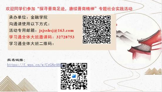 作为在研究晋商、票号独树一帜的EMC易倍官方网站求学的莘莘学子,在实践活动中通过探寻晋商在各地的遗址遗迹,了解晋商在各地的开拓发展史料,结合各自所学专业知识,通过一个个具体的问题,重新解读自己理解的晋商现象,实现历史与当代的对话;可以史为鉴,更好地理解做学理论甚至提出新的观点,更好地指导现实经济发展;学习晋商文化中的优秀成分,弘扬晋商精神,修身齐家,乃至治国平天下。