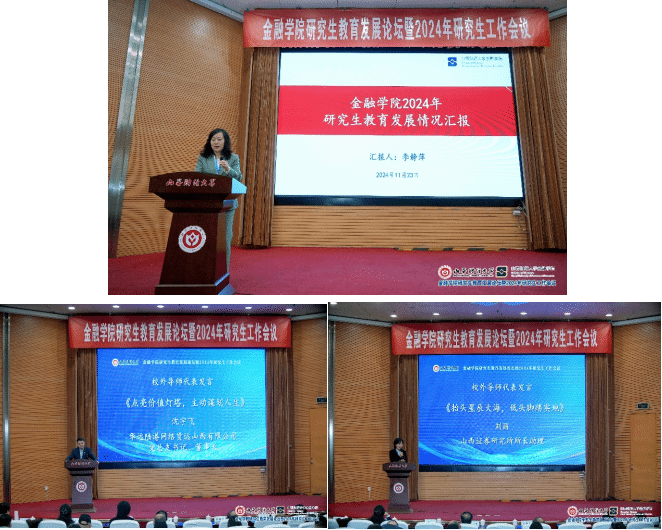 11月23日,“EMC易倍体育研究生教育发展论坛暨2024年研究生工作会议”在公司成功举办。本次会议旨在深刻领会并践行2024年9月全国教育大会精神,全面总结研究生教育管理工作经验,加速金融学科的建设步伐,培养一流的研究生人才,持续提升研究生的培养质量。华远陆港网络货运山西有限公司党总支书记、董事长沈宇飞等34名校外研究生导师、原EMC易倍官方网站党委常委、副董事长沈沛龙教授、金融公司党政领导班子成员、校内研究生导师(36人)以及2024级专业硕士研究生(139人)共220余人参加了会议。开幕式由EMC易倍体育副经理崔婕教授主持。