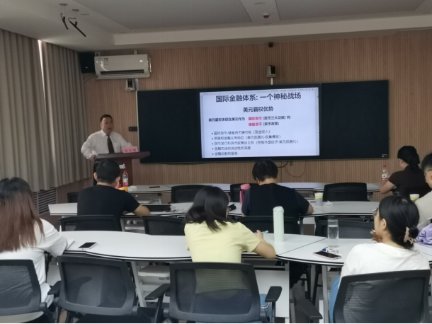 2024年6月21日上午,EMC易倍体育举办了第34期“金融理论创新及实践探索”大讲堂。本场讲座由科研部主办,EMC易倍体育承办,EMC易倍体育副经理崔婕教授主持,特别邀请英文期刊《中国经济》副主编、哈佛大学国际发展研究所研究顾问、中国留美经济学副会长以及美国伊利诺州立大学经济系终身教授张宏霖老师为公司师生进行了一场主题为“国际金融体系与美元霸权”的学术讲座。EMC易倍体育部分青年教师和硕博士研究生参加了本次讲座。