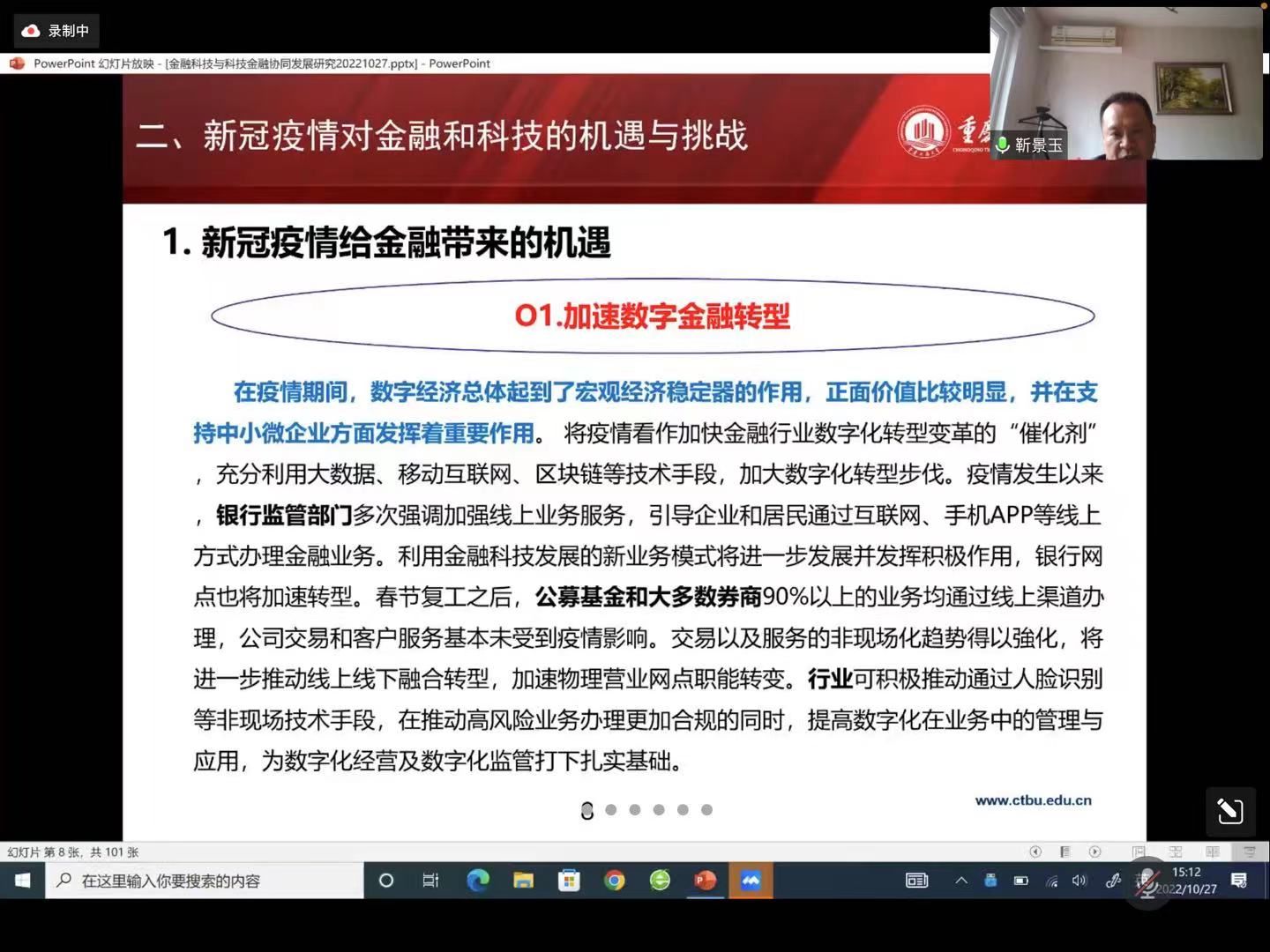 2022年10月27日下午15:00时,EMC易倍体育举办了“金融理论创新及实践探索”大讲堂,由于疫情原因,本次会议通过腾讯会议的方式举办。