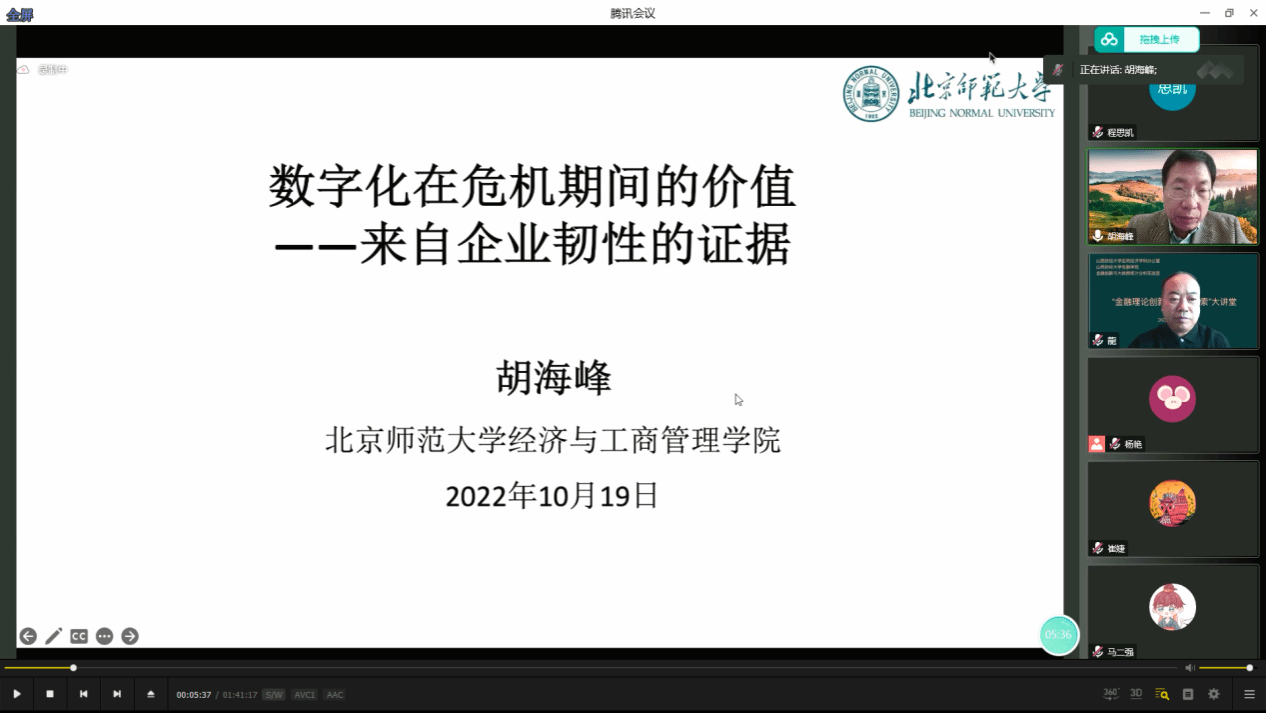 2022年10月19日下午15:00时,EMC易倍体育举办了“金融理论创新及实践探索”大讲堂,由于疫情原因,本次会议通过腾讯会议的方式举办。