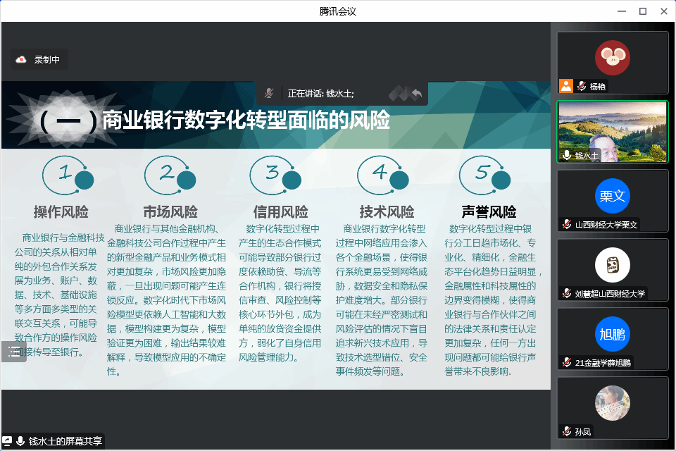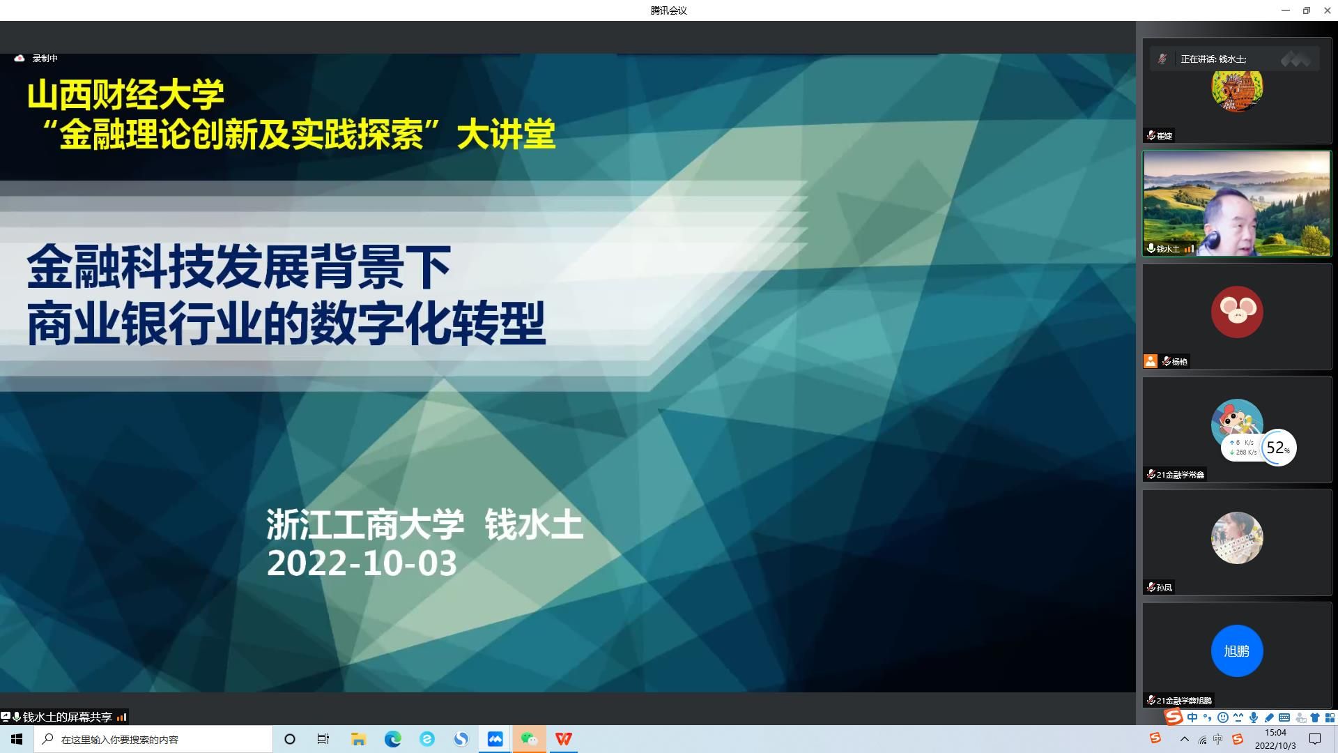 2022年10月3日下午3:00,EMC易倍官方网站应用经济学科办公室、EMC易倍体育特邀浙江工商大学二级教授、MBA公司经理、浙江金融改革发展研究院经理、浙江之江创投研究院经理的钱水土教授,为公司师生作了题为《金融科技发展背景下商业银行的数字化转型》的讲座,因疫情原因,讲座采用腾讯会议线上方式举行。公司教职工、部分其他公司的教师及研究生一百余人聆听了本场讲座。