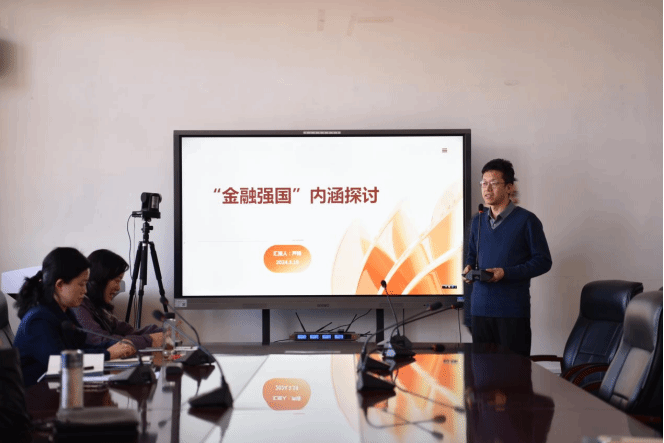 副经理芦锋教授进行了关于“金融强国内涵探讨”主题的学术报告。首先,他结合金融相关理论与具体案例向大家深入浅出介绍了“金融强国”内涵的相对性以及精确性,他以全球资本市场为例,尤其对我国A股、美股及亚太股票市场进行了对比分析,强调美国真正强大的根本原因在于其不断创新的先进科技,而支持起其强大科技创新的动因是美国完善的资本市场。其次,芦教授又探讨了山西省的“金融强省”之路,他认为合肥的“芯屏汽合”发展之路值得我省借鉴,合肥目前拥有200多支政府引导基金,规模达到了2000亿,其强大的金融力量完全可以支撑起合肥的科技之路,包括芯片、显示屏以及新能源汽车的高速发展。最后,参会老师之间进行了充分的、热烈的交流讨论,现场气氛十分活跃,学术氛围浓郁。